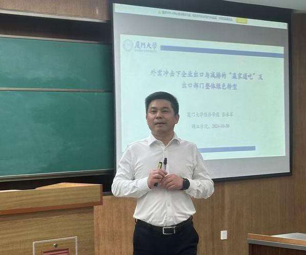 彭水军教授凭借其深厚的学术造诣和丰富的研究经验,为现场听众带来了一场思想的碰撞与启迪。在报告中,彭教授深入剖析了当前经济形势下“赢家通吃”的现象,以及出口部门面临的机遇与挑战。他指出,随着全球经济的发展和环境问题的日益凸显,出口部门的绿色转型已成为必然趋势。