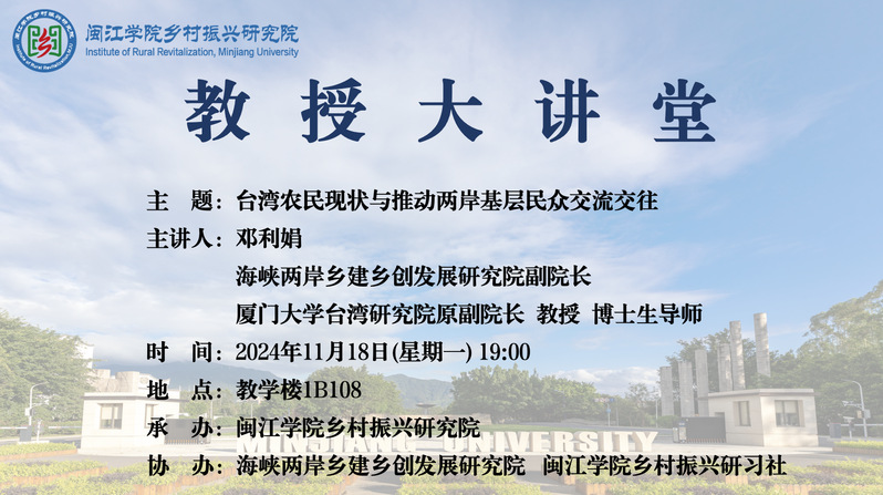 【教授大讲堂预告】邓利娟:台湾农民现状与推动两岸基层民众交流交往
