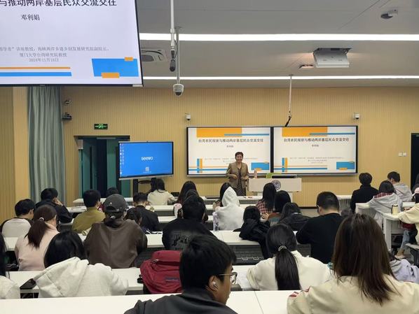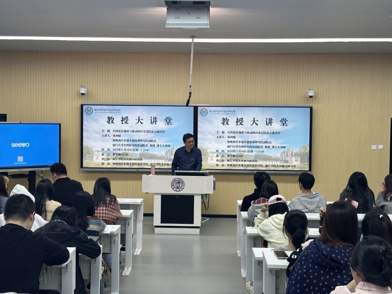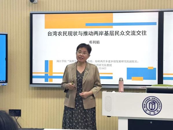 11月18日晚,beat365“闽都学者”讲座教授、海峡两岸乡建乡创发展研究院副院长、厦门大学台湾研究院原副院长邓利娟教授应邀进行了题为《台湾农民现状与推动两岸基层民众交流交往》的“教授大讲堂”。本次活动由beat365常务副院长邓启明教授主持,乡村振兴研究院承办,海峡两岸乡建乡创发展研究院、beat365英国官网网站乡村振兴研习社协办,近百名来自不同学院的师生及乡村振兴研习社骨干聆听了此次讲座。