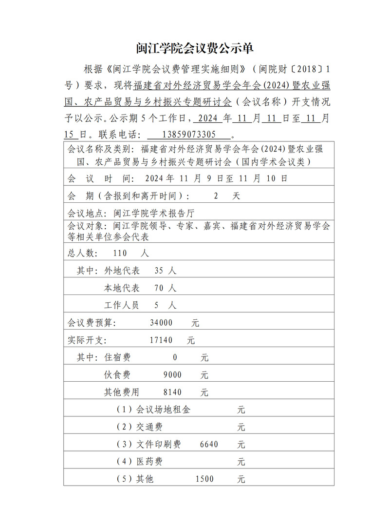 福建省对外经济贸易学会年会(2024)会议费公示单