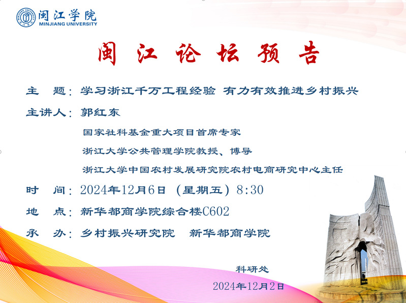 【闽江论坛预告】郭红东:学习浙江千万工程经验 有力有效推进乡村振兴
