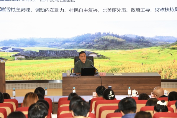 12月11日下午,通识教育与美育中心、乡村振兴研究院联合主办的“以优秀的传统文化引领乡村振兴”主题讲座在新图书馆会议中心第二报告厅举行。本次讲座由福州市永泰县政协副主席、福建省乡村振兴研究会理事、福州大学建筑学院特聘教授张培奋主讲,乡村振兴研究院常务副院长邓启明教授主持。