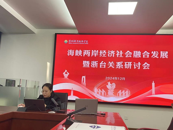 据悉,本次研讨会由厦门大学台湾研究中心、台州两岸融合发展研究基地(台州职业技术学院)联合主办,得到了台州市台办、民革台州市委会等的指导与支持;中国国民党中常委、高雄科技大学兼任教授孙健萍,中国国民党政策会、中华青雁和平教育基金会副执行长张雅屏等出席本次会议,并发表题为《川普上任后对美国与两岸经贸的可能影响》与《两岸经济融合新机遇:以台湾选举型社会观点出发》的主题演讲。会议深度聚焦两岸经济社会融合发展的现实及其关键点与政策需求,不仅为进一步加强两岸融合发展、促进各领域深层次合作提供了学术与实践指引,也为两岸专家学者搭建了一个务实高效的交流平台。与会代表纷纷表示,将继续深化研究、凝聚共识,为深化浙台关系与两岸融合发展贡献更多建设性力量,助力两岸关系和平发展和中华民族的伟大复兴。