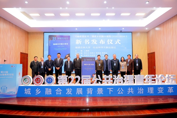 12月8日,以“城乡融合发展背景下公共治理变革”为主题的第22届公共治理青年论坛在福州举办,会议由福建农林大学主办,大会开幕式上还举行了《福建蓝皮书·福建乡村振兴报告(2023-2024)》新书发布仪式。