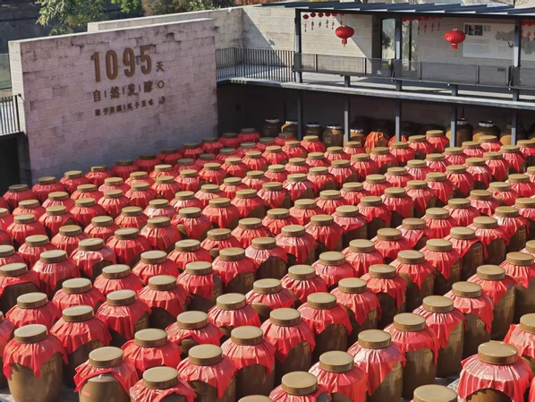 走进侨新红曲醋观光工厂,醋厂解说员热情接待了实践团队,并带领大家参观了年产量达一万吨的一期建设,介绍了现代化一年周期与古坊三年周期两种酿造工艺。时间广场上,历经1095 天古法酿造的老醋,静静诉说着独特魅力。观光工厂旁侧的墙面,巧妙融合了永春白鹤拳这一国家级非物质文化遗产元素,以功夫十三式为载体介绍永春老醋的酿造工艺,通过丰富的图文资料和实物展示,队员们对永春老醋的发展历程、酿造工艺和文化内涵有了初步认知。酿造车间里,队员们见证了老醋从精选原料、发酵、陈酿到成品的全过程。匠人们对原材料精挑细选,严格把控时间与温度,最终调制成不同酸度的老醋再高温入库,每一道工序都严格遵循传统工艺,确保了老醋的纯正品质。