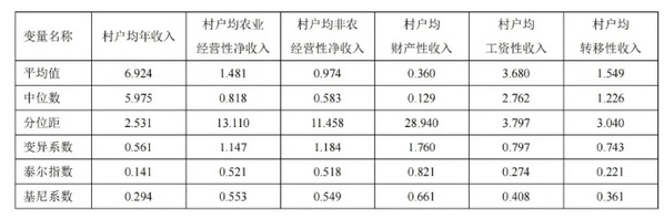 注:表中村集体经济和村户均收入的各项数据,均为经过计算得出的村级层面的平均值。