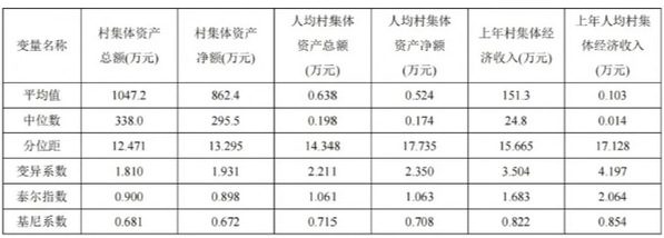 注:村集体资产净额等于村集体资产总额减去村集体资产负债;计算人均指标时采用的是户籍人口;分位距是指80%与20%分位点的比值。下表同。
