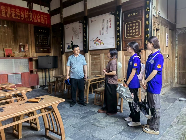 烟雨朦胧,实践队结伴走进古城镇丁黄村,惬意闲适的落日营地、页岩的铺巷垒阶、生机盎然的庭院、青瓦绿树让人眼前一亮。当地村干部介绍,近年来丁黄村依托自身资源优势,大力发展特色种植产业和乡村旅游,并聘请专业团队一起盘活村庄闲置资源、统一规划文旅发展,对村落实施“整村运营”。习近平总书记指出,“繁荣发展社会主义文艺”要“提升文艺原创力,推动文艺创新”,丁黄村天然的红色底蕴和建筑特色,让其成为独特的“天然摄影棚”,包括《绝命后卫师》、《古田军号》等11部影视作品在此取景拍摄,让大家感受到丁黄村的文艺烂漫底蕴。丁黄村的发展变迁也让村民们的腰包越来越鼓,村容村貌也发生了翻天覆地的变化——昔日的古村落既留住了乡愁,更走出了一条“红色文旅+绿色产业”的振兴新路。