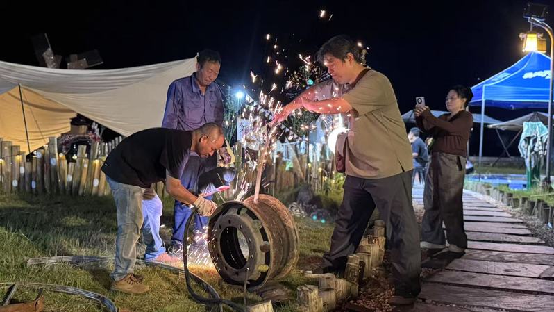 7月21日至24日,露营基地转入全面施工阶段,经过艺术布局和园林造景手法再加工,让曾经破旧的露营基地焕发新的风姿。在老师们的指导下,同学们还学习了钢材切割、焊接与空间造型技术。7月25日,第二届万寿岩两岸青年地景艺术创作周正式开幕,来自海峡两岸11所高校的青年学生在为期一周的时间内,以废旧钢材为主要创作材料,将冰冷的金属转化为诠释“古今”对话的艺术装置,在万寿岩这片承载着两岸同根同文历史记忆与温度的土地上,尽情挥洒激情和智慧,为探索和推进海峡两岸乡村融合发展贡献青春之力。