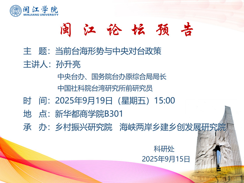 【闽江论坛预告】孙升亮:当前台海形势与中央对台政策
